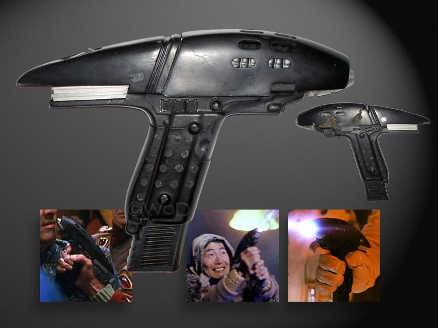 My favorite all-time phaser, this design was introduced in Final Frontier. Based on a Beretta pistol which gave it a more "real world feel", this looked heavy-duty and deadly. This is a fiberglass hero version – highly detailed for close-up use.