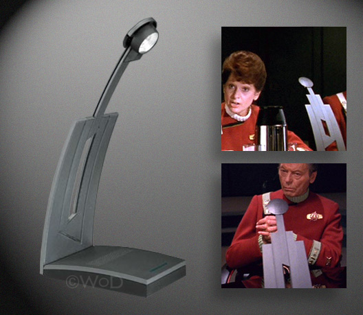 These lamps were placed around the conference room table at Starfleet Headquarters. Designed by Porsche (yes, THAT Porsche), these lamps fit right into the 23rd century with their sleek look.
